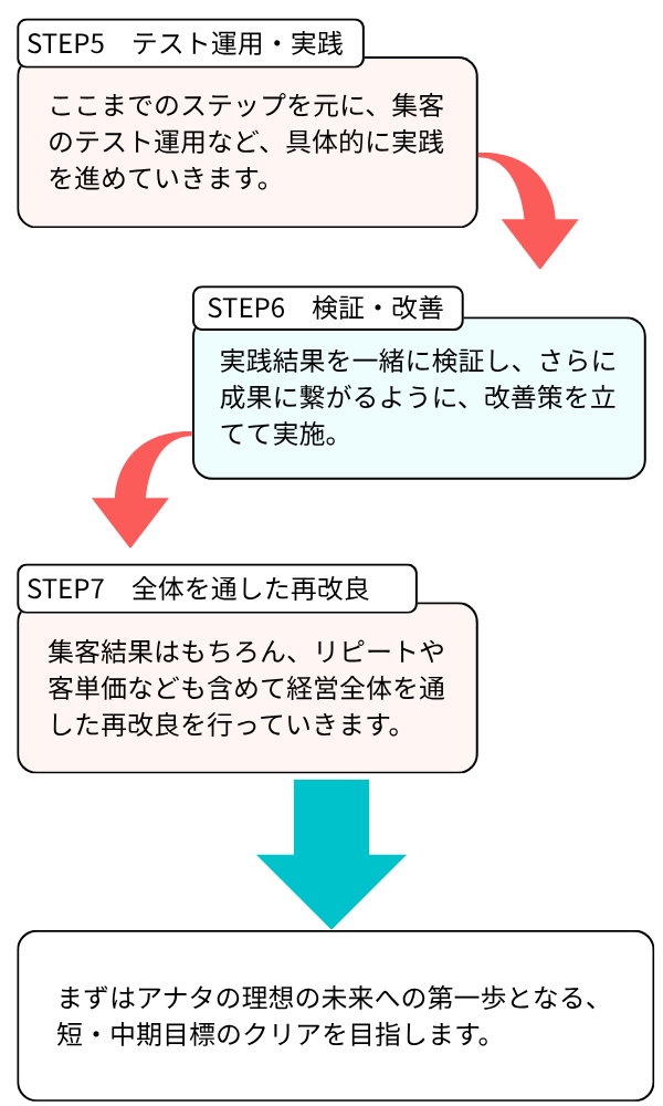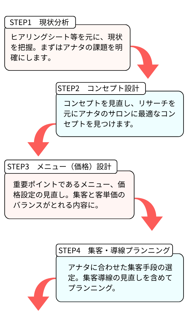 1人サロンの強みを活かした、着実な成長を一緒に目指します。魔法のような特効薬はありません。